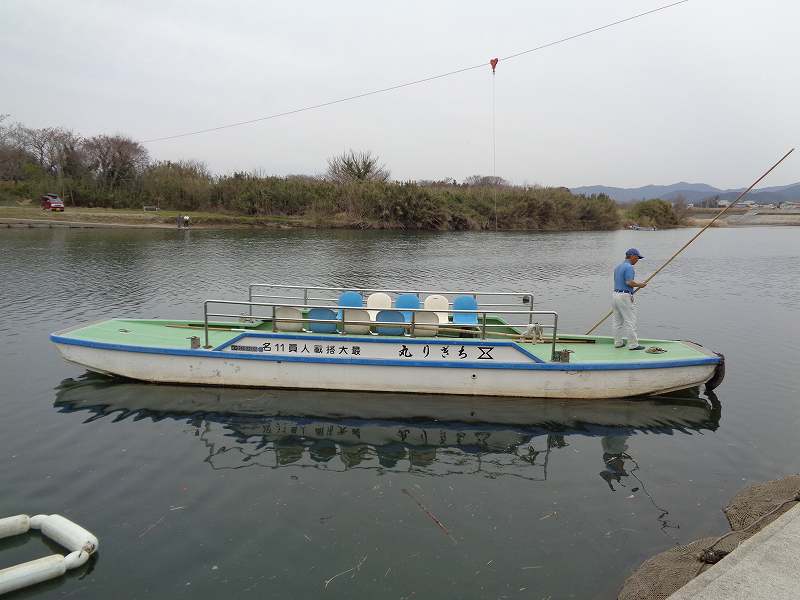 ↑河原でお弁当を食べた後は牛川の渡しで豊川右岸に渡してもらいました。