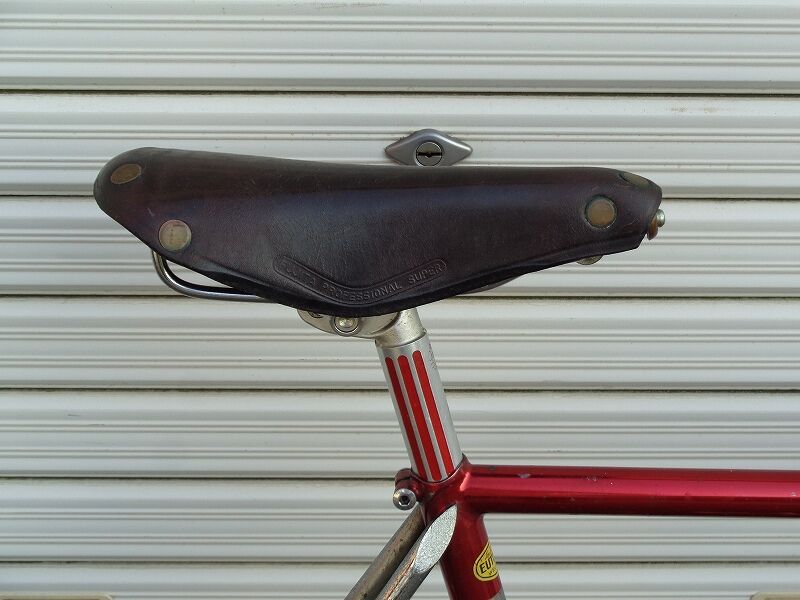 ↑サドルは革サドルで藤田プロフェッショナル スーパーですが・・・革サドルと言ってもツーリング用とは、まったく違います。