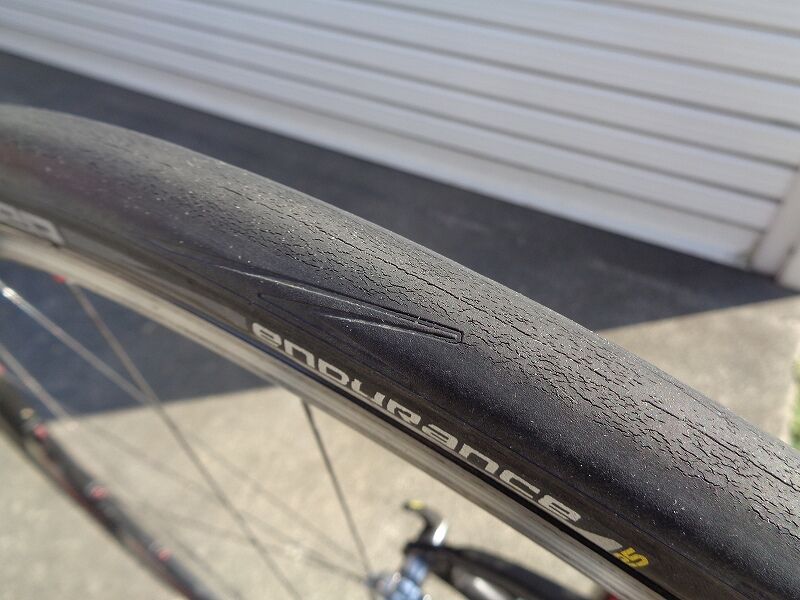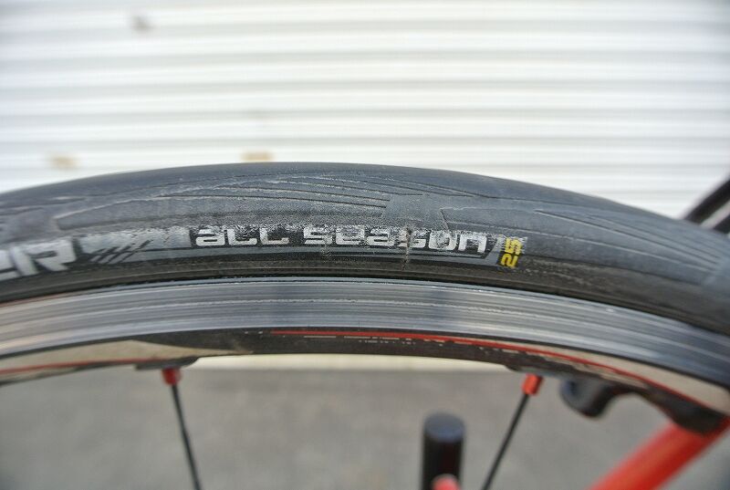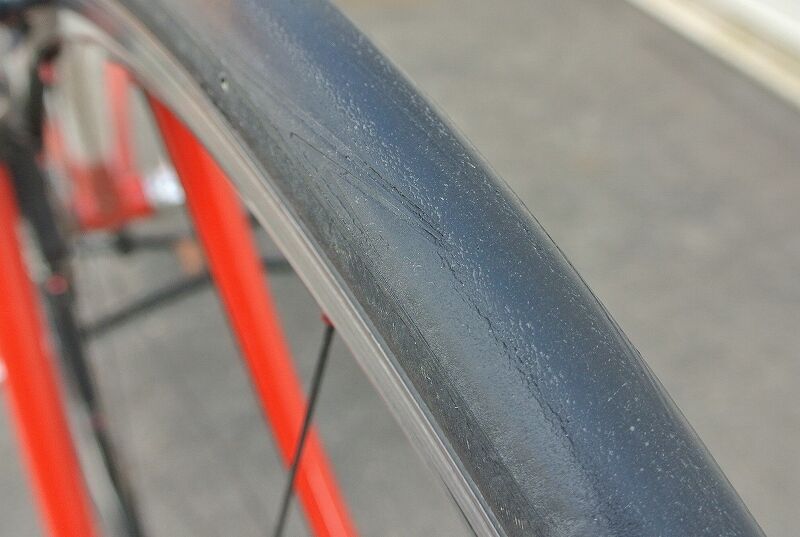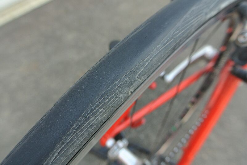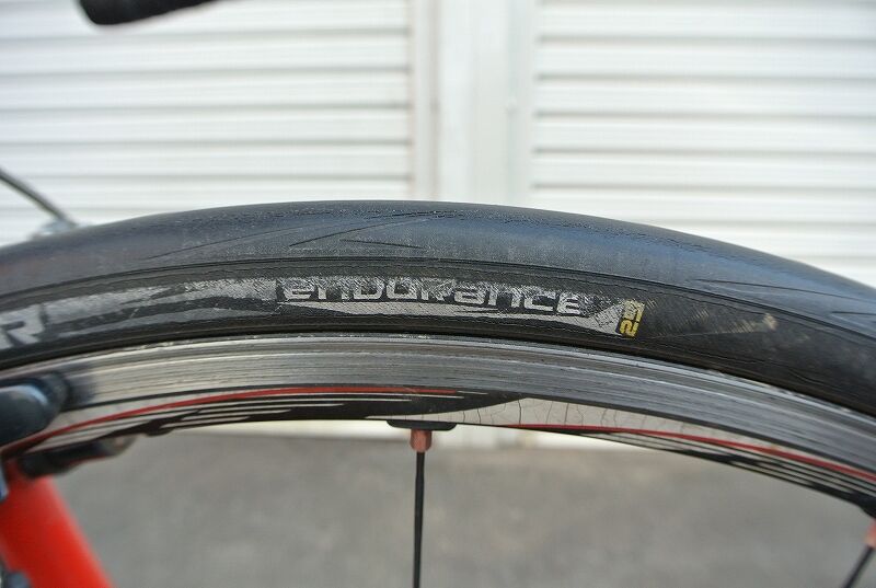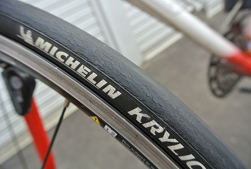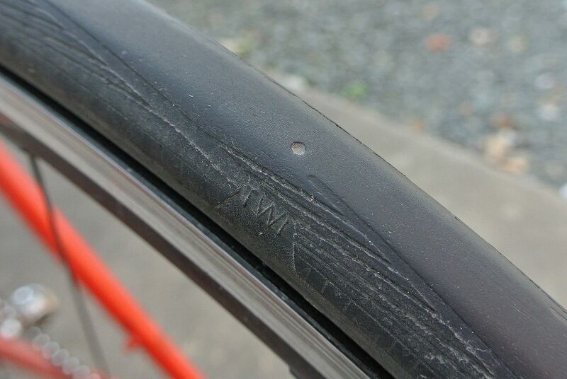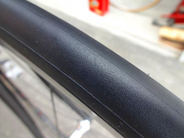 ↑パターンは、スリックではありませんが、いかにも抵抗が少なそうなもの。このタイヤ、基本的には同社のピスト競技用タイヤがベースになっていると思われます。