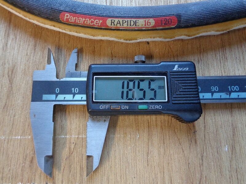 ↑太さを測ってみました。空気をしっかり入れて測ってみると約18.6ミリほどでした。