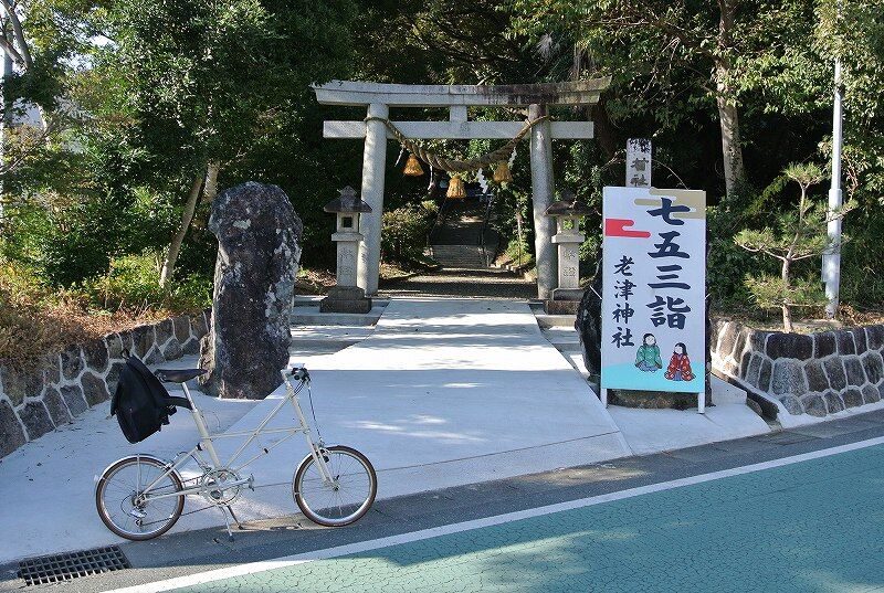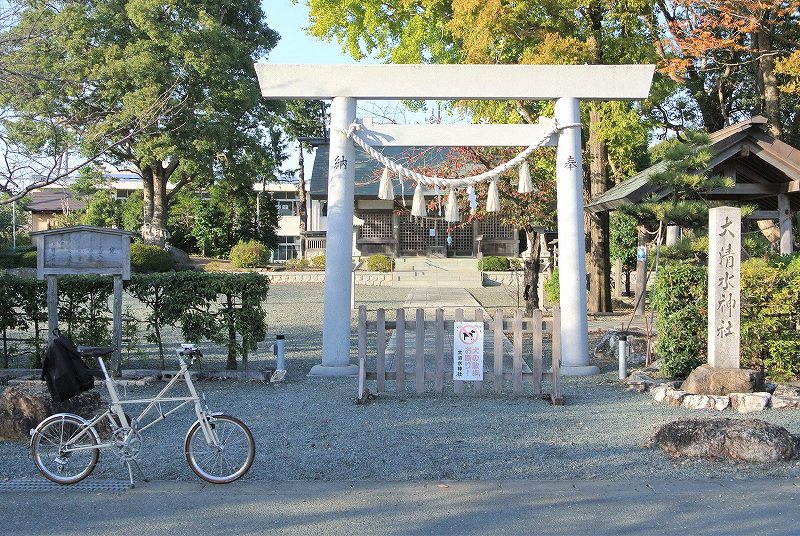 ↑大清水神社、鳥居の形式は神明鳥居ですね。自転車はモールトンTSR。