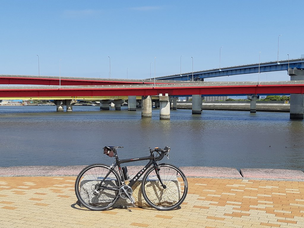 ↓①赤、白色基調のチームジャージとフレームカラーの統一感がカッコいい?(笑)