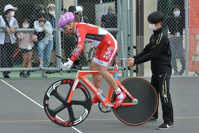 市民祭(豊橋競輪場)、1000mタイムトライアルのスタート時の様子です。
