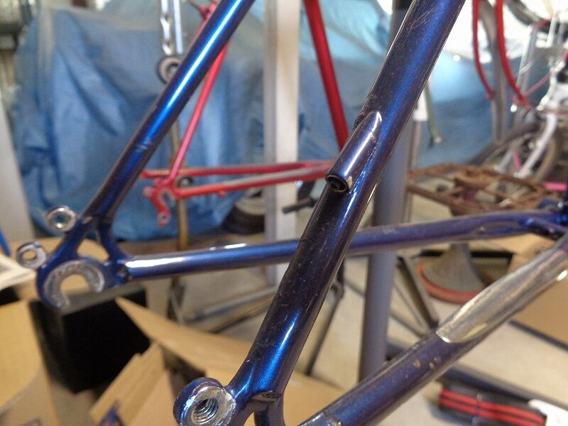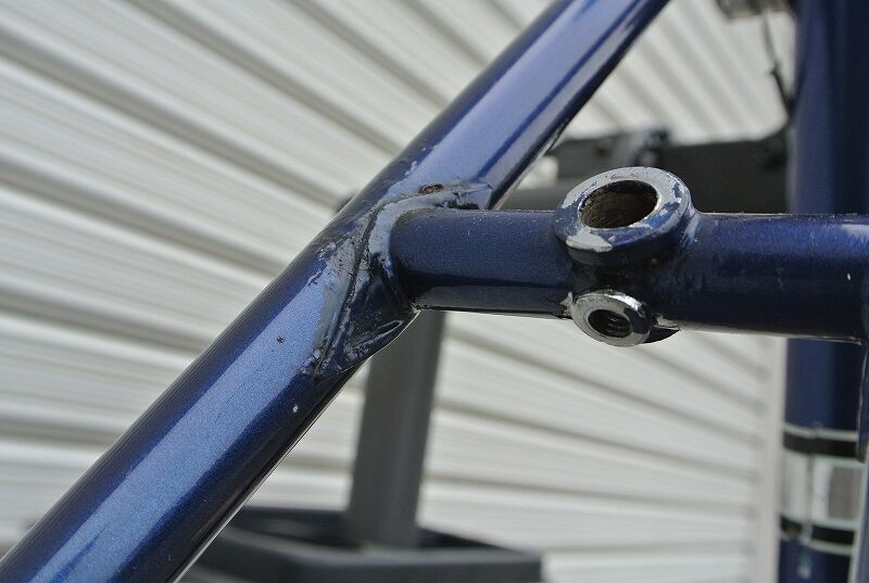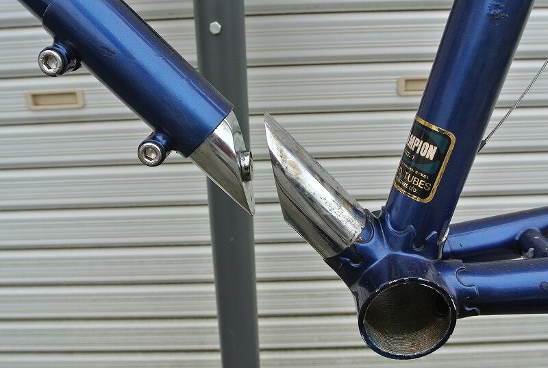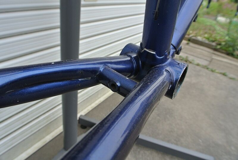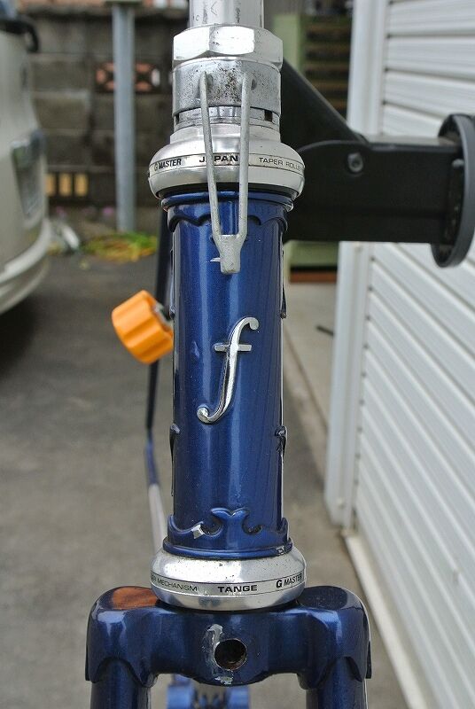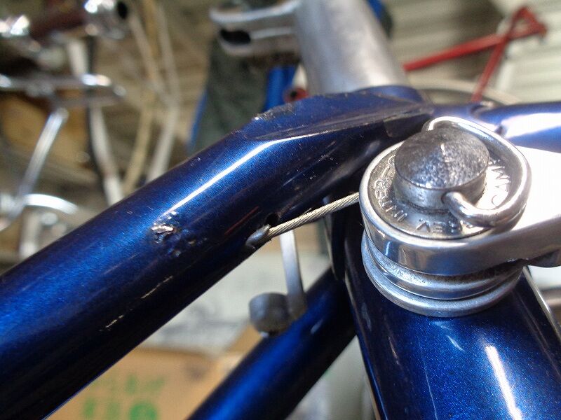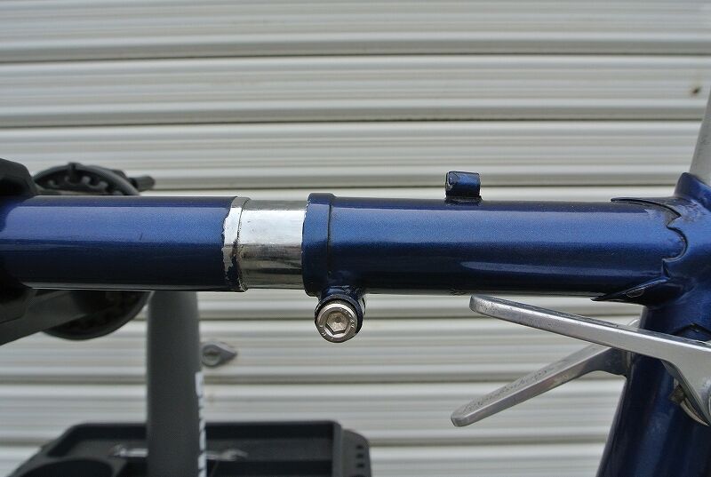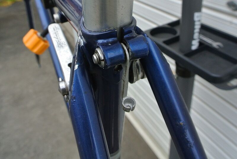 ↑↑、↑ヘッド固定バンド。ブレーキアウター受けもこのバンドに直付けされています。これも田川さんの手作りですね。