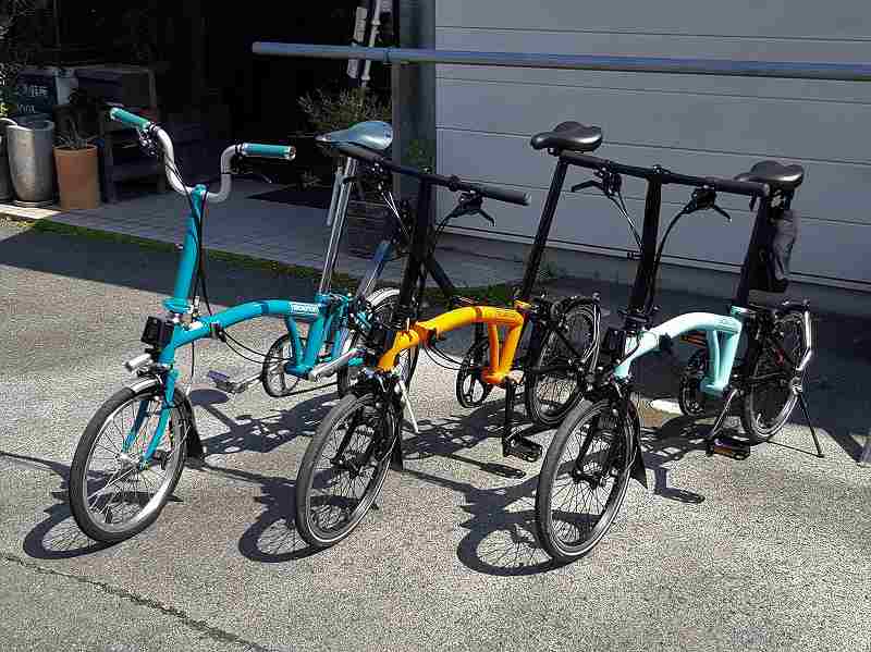 ↑この日はブロンプトン乗りのお客さんも何人か見えてウッドデッキに集合。