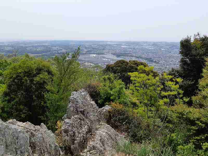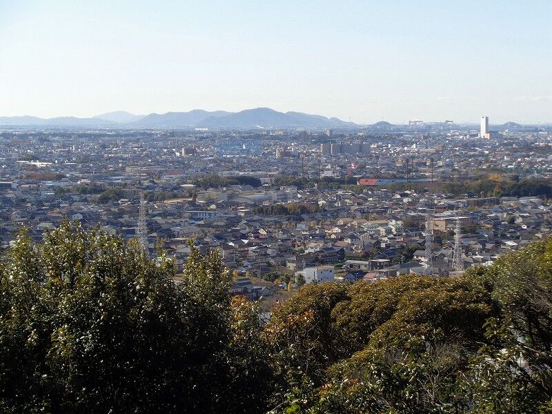 ↑赤岩寺から西側の尾根先にある展望台。豊橋市街地から奥には田原市の蔵王山も見えています。