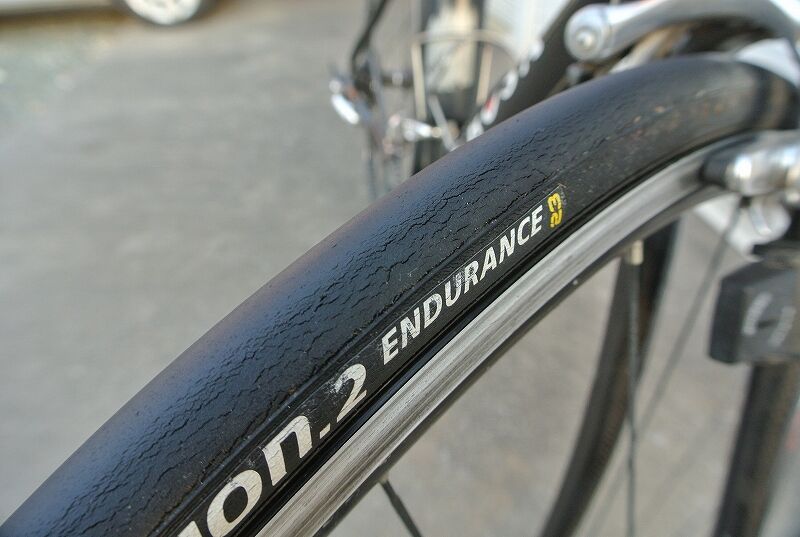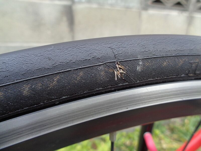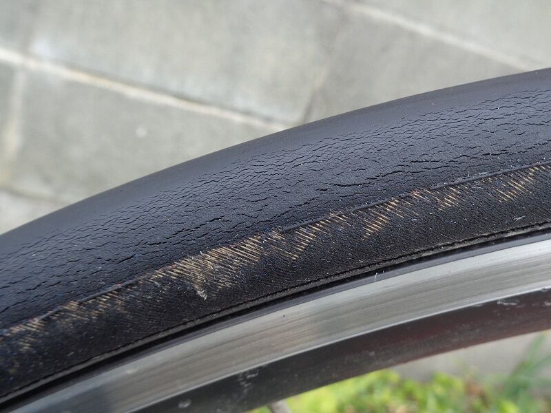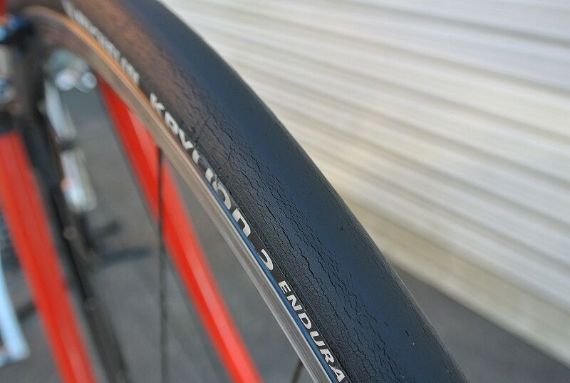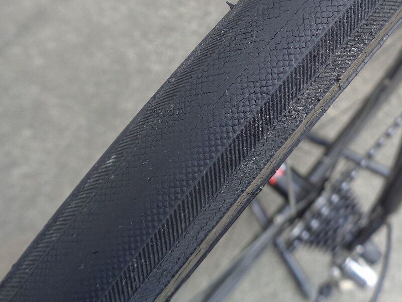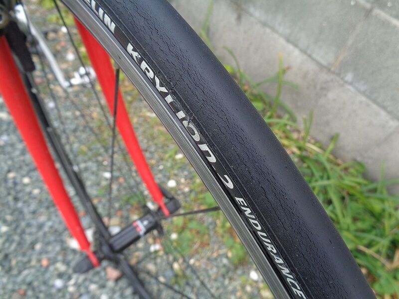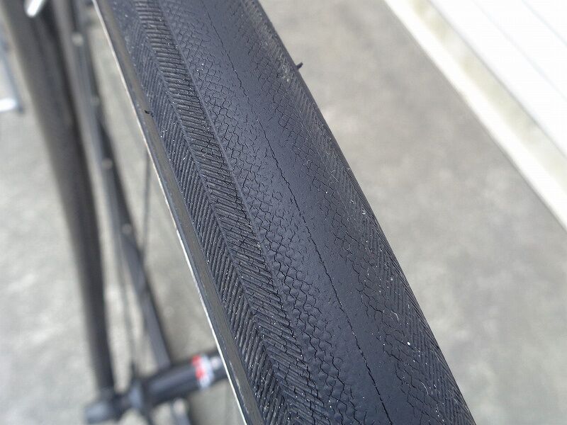ちなみに、このタイヤ、2017年5月に千キロ超使ったところから休止、ほとんど乗らず(他に乗る車輌、タイヤが沢山あって)気が付くと4年ほど経ってしまいました。その為、タイヤの摩耗度合い、ひび割れなどは本来のタイヤの状態ではないことをお断りしておきます。