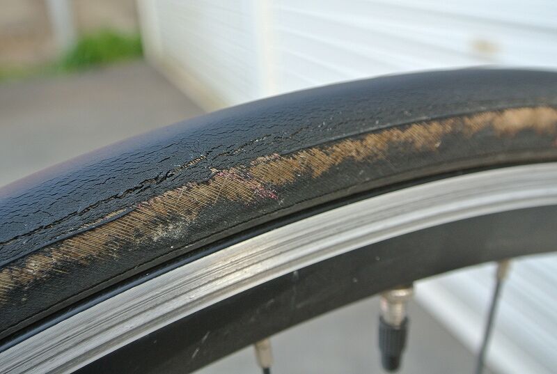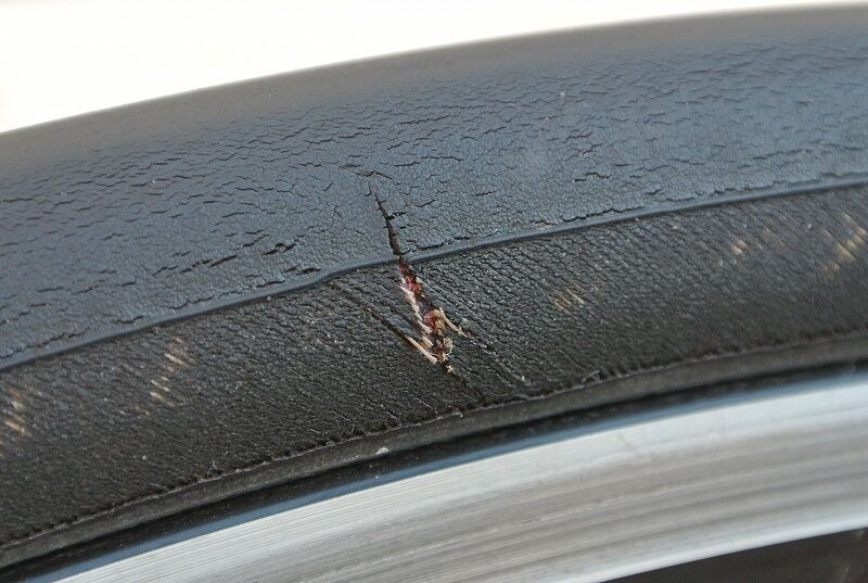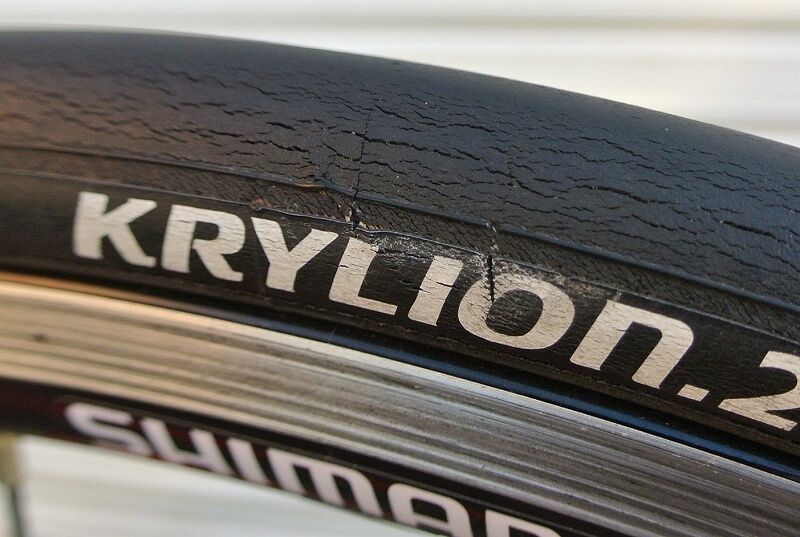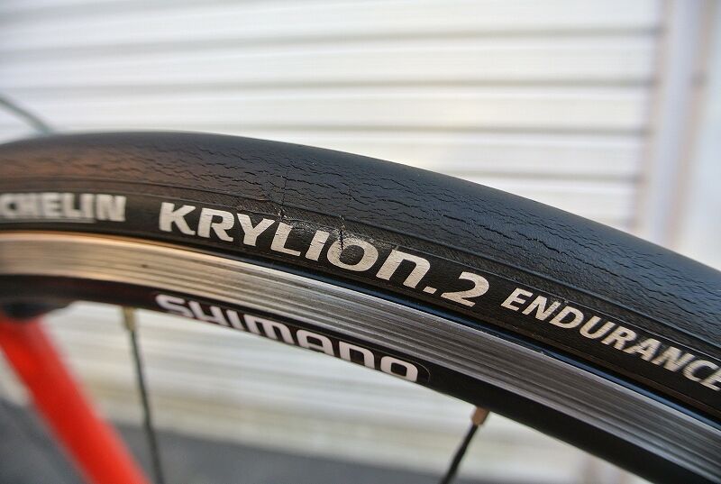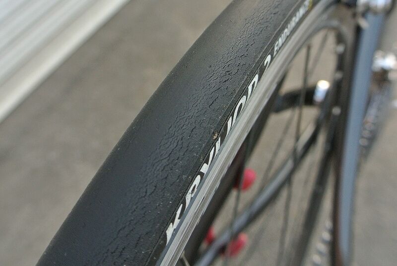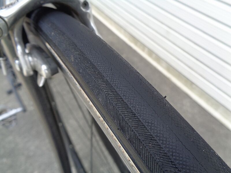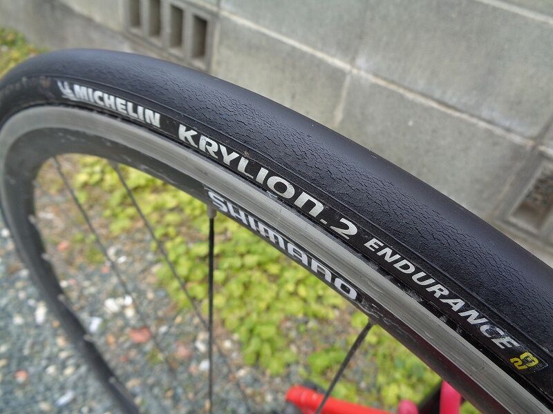 ちなみに、このタイヤ、2017年5月に千キロ超使ったところから休止、ほとんど乗らず(他に乗る車輌、タイヤが沢山あって)気が付くと4年ほど経ってしまいました。その為、タイヤの摩耗度合い、ひび割れなどは本来のタイヤの状態ではないことをお断りしておきます。